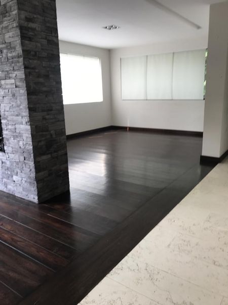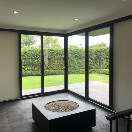 Distribuida en 2 pisos con family room, cuarto TV, estudio, cava, 3 recámaras cada una con baño y vestidor. Amplio jardín con terraza estacionamiento para 5 autos.