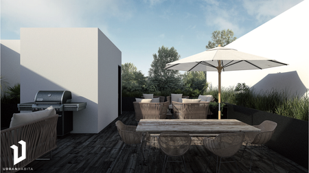 El edificio cuenta con amenidades como Roof Garden Común, Jardín, Gimnasio, Elevador y Vigilancia 24 hrs.